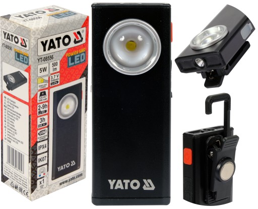 Міцний алюмінієвий ліхтарик Yato, оснащений діодом, який забезпечує світло 500 лм і радіус дії 55 м.