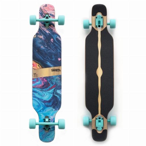 Його конструкція робить його фантастичним для їзди містом - профіль розвалу разом із легким увігнутим покриттям гарантують чудове відчуття дошки, а отже, підвищений комфорт водіння завдяки своїй маневреності. Подвійний наконечник — це форма, створена для трюків, тоді як серцевина з тополі та ясена, поліуретанові бічні стінки та конструкція зі скловолокна надають лонгборду Switch надзвичайної гнучкості, зберігаючи надзвичайно міцну конструкцію. Траки з верхнім кріпленням дозволяють знизити центр ваги на дошці, що робить натискання на ній набагато менш стомлюючим, ніж у випадку з дошками з вантажівками з нижнім розташуванням.