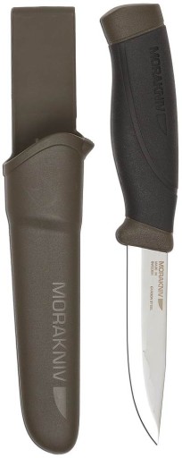 Універсальний вуличний і туристичний ніж, який підійде в таких видах діяльності, як походи, риболовля, полювання та бушкрафт. Мала вага, ергономічна ручка, якісна сталь і дуже доступна ціна сприяють безкомпромісному використанню. Пластикові піхви темно-зеленого кольору із застібкою для пояса забезпечують надійне кріплення ножа на поясі. Ніж Mora Companion MG Olive HeavyDuty Carbon є наступником цінної моделі Clipper - перевірений дизайн тепер з довшим кінчиком леза та новою ручкою! Версія у варіанті оливкового кольору. Рукоятка ножа була збільшена, а лезо потовщено до 3,2 мм.