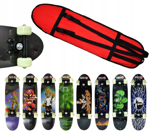 Розважальний скейтборд для дітей та підлітків. У комплект входить практичний чохол з регульованими ременями для скейтборду, завдяки яким ви завжди зможете мати улюблену дошку з собою.