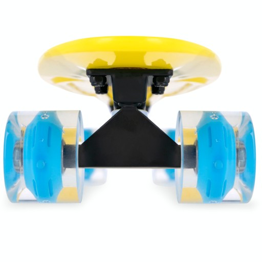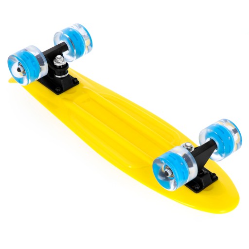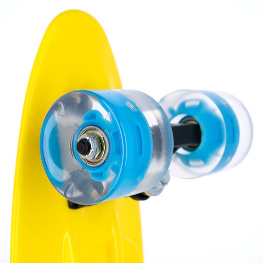 Spokey FISH швидкий, стабільний і безпечний завдяки використанню великих (60 x 45 мм) поліуретанових (PU) коліс з твердістю 90A. Ця комбінація дозволяє розвивати високі швидкості, зберігаючи належне зчеплення та гасячи вібрації, що виникають під час руху по нерівній поверхні. Використання поліуретану гарантує, що колеса будуть зношуватися дуже повільно, оскільки це матеріал, який надзвичайно стійкий до стирання. Більше того, під час руху колеса світяться, завдяки чому не тільки привертають погляди, а й приносять ще більше задоволення (світлодіоди світяться через тертя підшипників, що викликає утворення електричних зарядів). Універсальні високоякісні карбонові підшипники ABEC-5 є водночас міцними та швидкими, завдяки чому скейтборд Spokey FISH ідеально підходить як для нерівного тротуару, так і для гладкого асфальту.