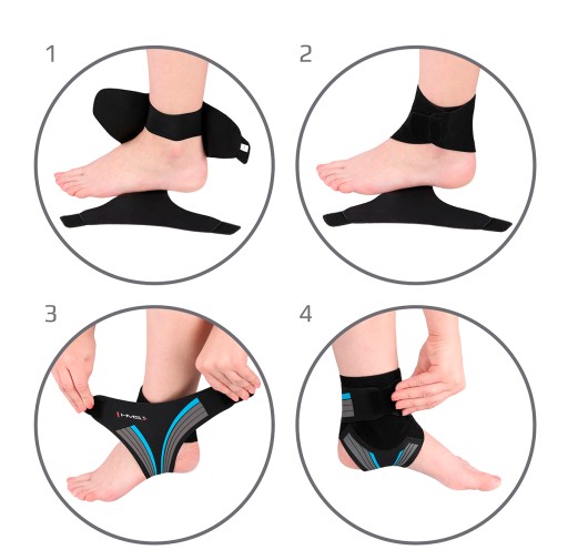 Ставимо стопу в середину ранта, потім спочатку з одного боку, потім з іншого, загортаємо щиколотку і застібаємо липучку. Матеріал, з якого виготовлено рант, дуже гнучкий, завдяки чому ми можемо легко підлаштувати його під свої потреби. Ідеально підлаштовується під форму ноги і чудово прилягає до неї. Продукт добре подіє при болях, незначних запаленнях і незначних травмах.