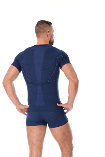 Чоловіча футболка з коротким рукавом ACTIVE WOOL - термобілизна найвищої якості, особливо рекомендована для активного відпочинку, наприклад, трекінгу. Виготовлена з найкращої в світі натуральної сировини - мериносової вовни. Він надзвичайно м'який, ніжний на дотик, не кусається і не дряпається. Мериносова шерсть також дуже тонка - її волокна мають лише 16,5 мікрон, що більш ніж у чотири рази менше середньої товщини людської волосини! Чим тонше і щільніше руно овечої вовни, тим краще її теплоізоляційні властивості. Волокна, які використовуються в колекції ACTIVE WOOL від BRUBECK, є найблагороднішою різновидом вовни австралійського мериноса. Завдяки високій еластичності вовни білизна не мнеться і не виштовхується. Він ідеально прилягає до тіла, ніжний до шкіри та не залишає слідів завдяки манжетам, що не тиснуть, і плоским швам.