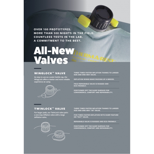 - Клапан WingLockTM полегшує надування та стиснення килимка