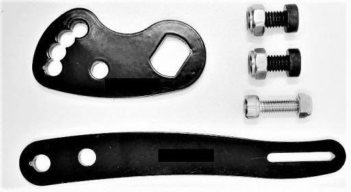 - Фіксатор обертання - важливий елемент під час кріплення комплекту для переобладнання. Перешкоджає обертанню осі двигуна. Також до замку додаємо набір шайб і гвинтів.