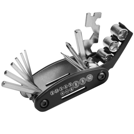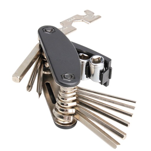 У набір входить 16 найважливіших інструментів, корисних для ремонту велосипеда:
