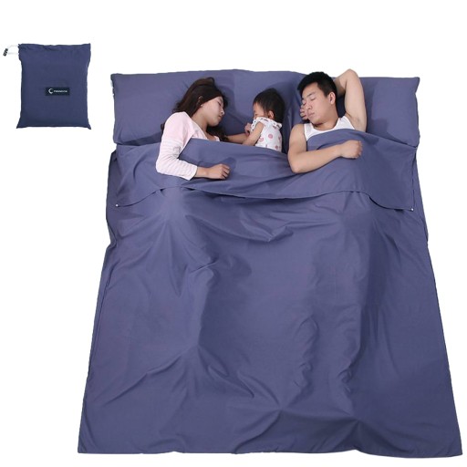 Просто покладіть спальний мішок прямо на готельне ліжко і покладіть в нього подушки.