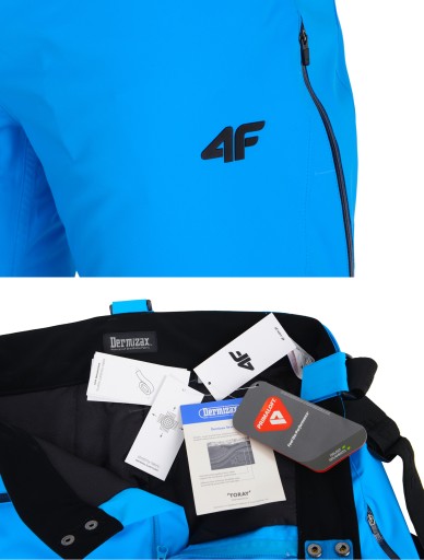 Удосконалені чоловічі лижні штани, розроблені для професіоналів, які шукають поєднання комфорту, максимального захисту від вологи та тепла під час зимових занять. Пропонована модель є найвищою моделлю чоловічих лижних штанів 4F з лінійки HQ Performance. Оснащений міцною поліуретановою мембраною Dermizax® з параметром 20 000 від японської компанії Toray®, яка надзвичайно стійка до тиску води та забезпечує найвищий рівень водонепроникності та повітропроникності в складних умовах.