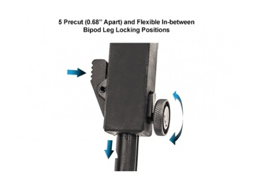Ніжки складаються в двох напрямках і встановлюються в 5 положень в залежності від конструкції зброї та умов стрільби. Ніжки мають регульовану висоту в діапазоні 6.0-8.5" (5 заводських налаштувань), фіксацію положення і систему швидкого розкладання за допомогою пружинного важеля.