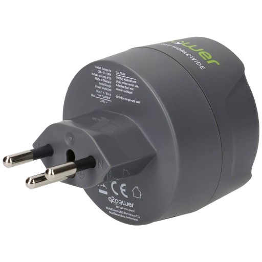 Двокомпонентний адаптер Q2 Power World Adapter "Combo" є оптимальним рішенням для мандрівників з усього світу, які подорожують Швейцарією або Європою (контакт з землею). Також ідеально підходить для готелів або організаторів семінарів, які хочуть запропонувати своїм гостям можливість використовувати електричні прилади, які вони привезли з собою на час свого перебування. З World Adapter Combo можна використовувати пристрої з більш ніж 150 країн Швейцарії та Європи (заземлений контакт). З адаптером World Adapter "Combo" можна безпечно керувати навіть такими потужними пристроями, як ноутбуки чи фени. Увага! для цього продукту було автоматично перекладено.
