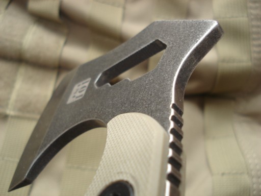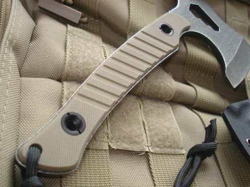 Компактний за розмірами (20,5 см) сокира від голландського виробника 101 Inc. Виготовлений з цілісної вуглецевої сталі 3Cr13. Оздоблення поверхні Blackwash — чорніння сталі, а потім «купання» її в кам’яному гравії — ця обробка надає сталі оригінального вигляду та маскує майбутні сліди використання. Підкладка - міцний нейлон зі скловолокном кольору Койот/Хакі. Сокирка має можливість відкручувати гайки на кілька розмірів. Отвір для мотузки - в комплект входить лямка з оригінального паракорду типу 550-7. Полімерна термоформована оболонка захищає лезо під час транспортування. Чохли мають кліпсу, яку можна закріпити на брючному поясі або протягнути через ремінь системи MOLLE в рюкзаку чи сумці.