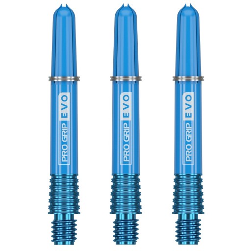 Алюмінієві та пластикові стрижні для дротиків Target Pro Grip EVO. Стрілка складається з алюмінієвої основи з насічками для додаткового зчеплення та пластикової верхньої частини.