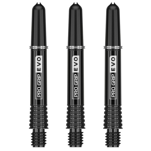 Алюмінієві та пластикові стрижні для дротиків Target Pro Grip EVO. Стрілка складається з алюмінієвої основи з насічками для додаткового зчеплення та пластикової верхньої частини.