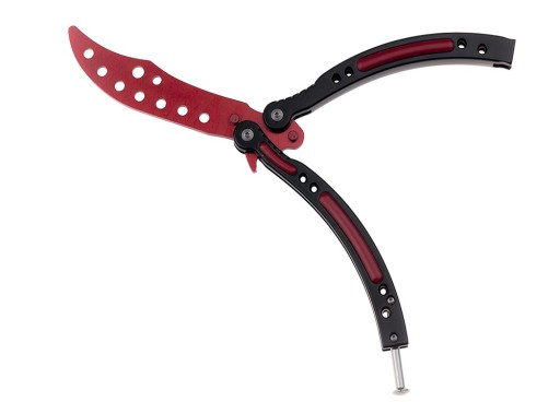 Тренувальний ніж має клинок у формі боуі ефектного червоного кольору.