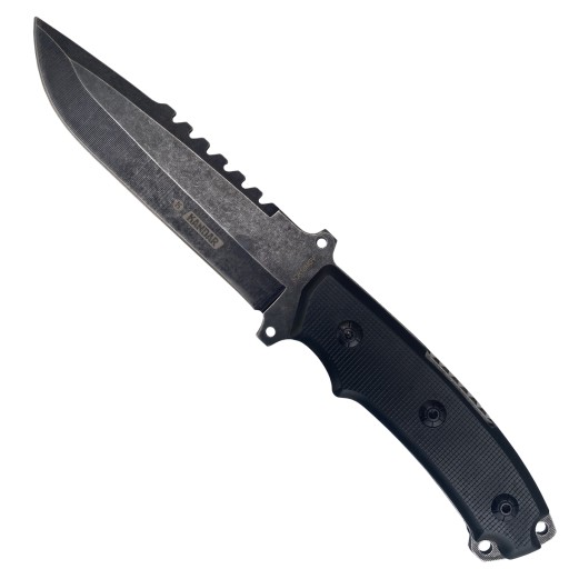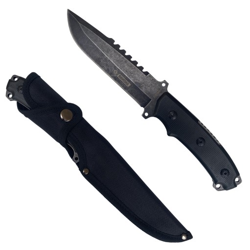 Сучасний і дуже ретельно опрацьований тактичний ніж, який також відмінно підійде як ніж для виживання, який не розчарує свого власника в будь-якій, навіть найекстремальнішій ситуації, і ефективно впорається з будь-яким завданням. У набір входять чорні нейлонові піхви, які застібаються на металеву засувку і дозволяють повісити ніж на ремінь.