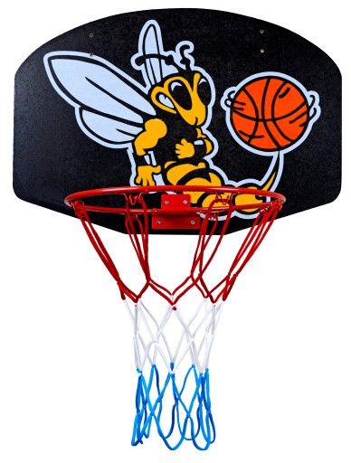 Ідеальний набір для розважального баскетболу. Дошка виготовлена з ДСП з металевим обідком і сіткою. Діаметр бортика кошика 32 см. Обруч стаціонарний і має 8 гачків для сітки.