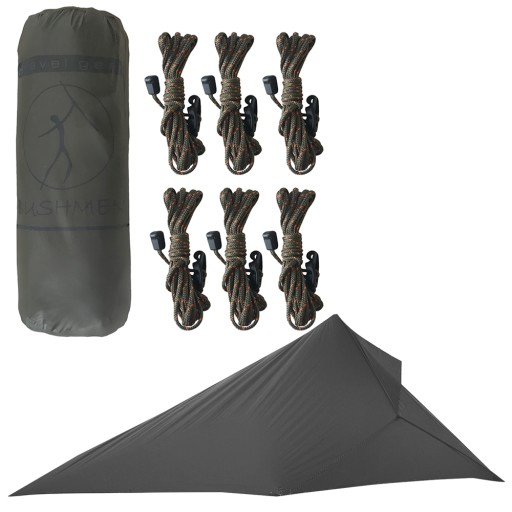 Брезент виготовлений з дуже легкого силилону, посиленого мікрорипстопом. Весь матеріал водонепроникний 2000 мм. Крім того, швейні лінії були додатково посилені, закріплені та зварені, що робить брезент повністю водонепроникним, вітронепроникним і стійким до механічних пошкоджень.