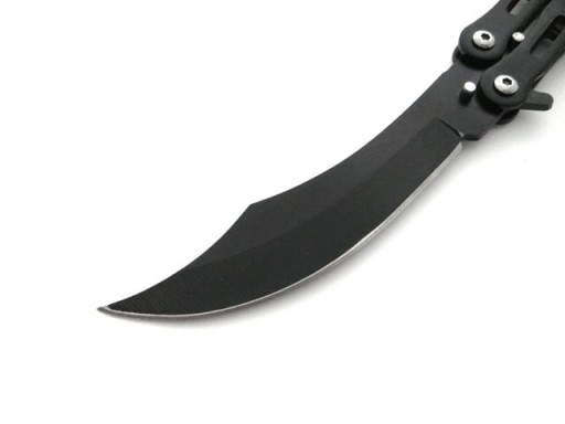 Привертає увагу чорний ніж-метелик хвилястої форми.