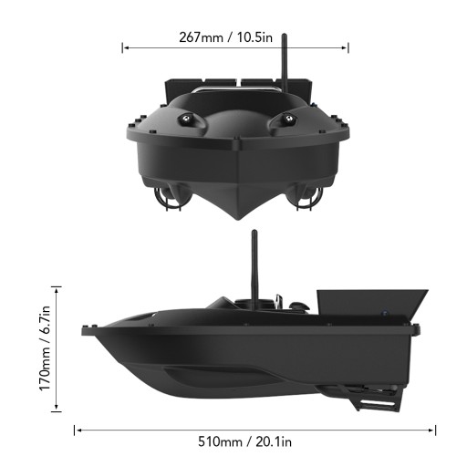 Розмір човна для наживки: 510 * 267 * 170 мм / 20,1 * 10,5 * 6,7 дюйма