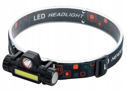 Міні-налобний ліхтар з двома світлодіодами (XPE + стрічка COB) з USB-зарядкою і магнітом, регульованим нахилом і ремінцем. Кнопка живлення також є силіконовим ковпачком, під яким ви знайдете зарядний порт Micro USB і світлодіод.