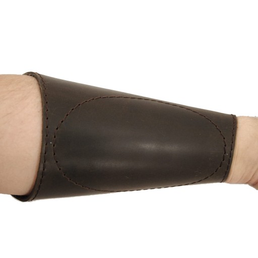 Протектор передпліччя з натуральної зернистої шкіри, змащеної маслом. Замочування шкіри в гарячих оліях робить її набагато більш стійкою до пошкоджень і складок. Зсередини протектор обклеєний м'яким велюром. Еластичний шнур зі стопором дозволяє швидко та зручно надіти протектор та підігнати його до передпліччя.
