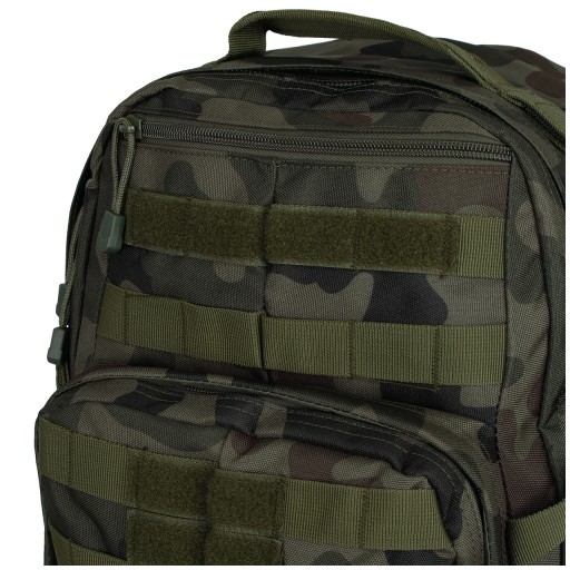 Спереду є кишеня з корисним органайзером, який ідеально підходить для носіння ліхтарика, ножа, гаманця тощо. Спереду, плечових лямок і боків рюкзака нашиті лямки модульної системи MOLLE, що дозволяє прикріпити додаткові кишені та сумки. У верхній частині рюкзака є невелика кишеня для дрібниць, ручка для транспортування і два виходи на липучках для трубки системи гідратації.