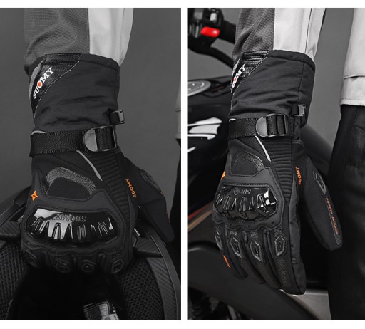 Рукавички SUOMY надзвичайно легкі та зручні. Їх найбільшою перевагою, завдяки спеціальному покриттю, є можливість керувати телефоном вказівним пальцем. Рукавички застібаються на «підтяжку», що робить надягання швидким і зручним. Вони ідеально підходять до форми руки. Рукавички мають захист кісточок. Вони виготовлені з водонепроникної дихаючої тканини, яка вбирає та відводить вологу та піт. Внутрішня сторона покрита антиковзаючим матеріалом, завдяки чому телефон не буде ковзати в руці і забезпечить міцне зчеплення з кермом під час їзди. Ретельно виготовлені чохли не щипають і не заважають під час руху. Їх можна використовувати для катання на мотоциклі, лижах і сноубордах, а також для бігу, гірських походів та інших видів активного відпочинку.