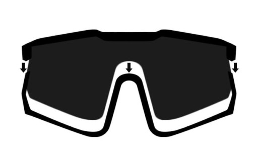 - Спеціальна насадка для носа, яку можна встановити замість нижньої оправи для ширшого поля зору, регулювання положення окулярів, кращої вентиляції та альтернативного вигляду окулярів. Носовий наконечник також має функцію підйому окулярів угору, що додатково покращує потік повітря та запобігає запотіванню.