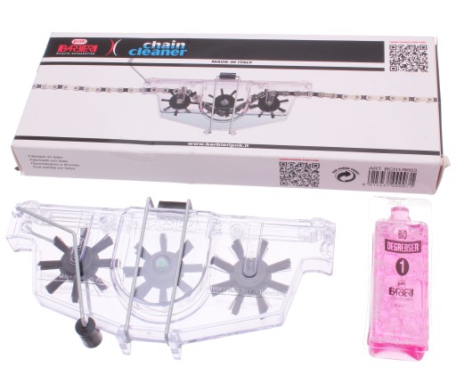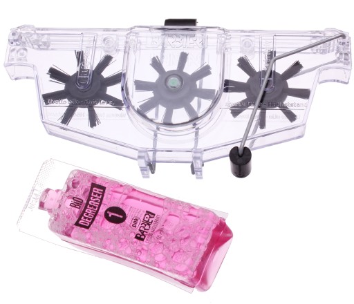 Легендарний пристрій для ретельного очищення ланцюга. Завдяки трьом щіткам, що обертаються, і ємності, наповненій високоякісним знежирювачем, він надзвичайно простий у використанні та високоефективний.