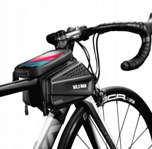 Велосипедна сумка 2-в-1 від Wild Man, яка служить водонепроникним чохлом для телефону та місцем для зберігання всіляких дрібниць. Прозорий сенсорний екран із термопластичного поліуретану, який забезпечує понад 90% чутливості дотику.