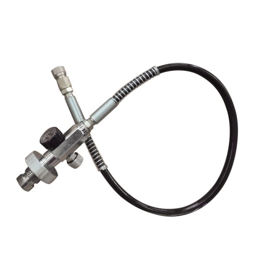 - * Шланг закінчується швидким з’єднувачем з нержавіючої сталі. Якщо ви хочете заправити свій пневматичний пістолет PCP, вам знадобиться штекер із внутрішньою різьбою 8 мм bspp або зарядний зонд із штекером.