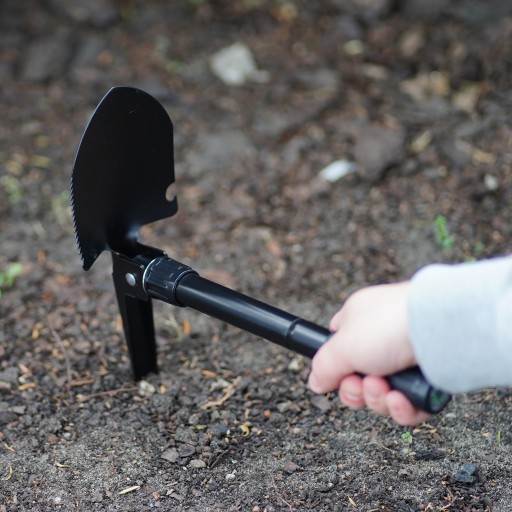 Багатофункціональнийлопата 7v1Має неслизьку ручку, тому не вислизне з руками під час інтенсивної роботи. Різьбовий механізм запобігає згортанню складної лопати. На кінці ручки якщож є компас. Лопата та кирка виготовлені з нержавіючої сталі та покриті захисною фарбою. Вал (хвостовик) виготовлений з алюмінієвого сплаву.