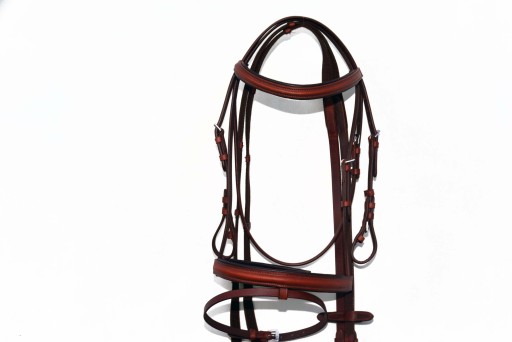 Вуздечка + поводи зі стопорами Анатомічний профільований розмір вуздечки. ПОВНА.Вуздечка виготовлена на шорно-сідельній фабриці у Франції.Виготовлена з натуральної шкіри найвищої якості, дуже м'яка і приємна на дотик, потилична частина і надбрівна смуга обтягнуті м'якою шкірою для запобігання потертостей.Вуздечка застібається і регулюється за допомогою стійкі пряжки, виготовлені з дуже якісної нержавіючої сталі. благородний . Сміливо купуйте Коричневий колір