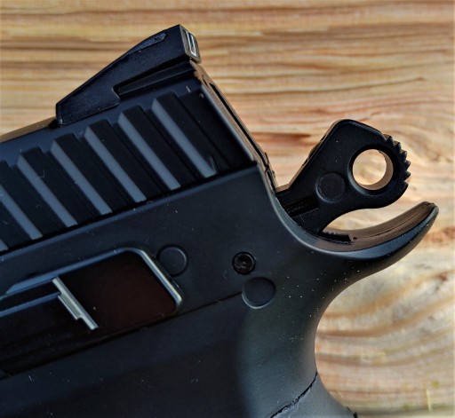 ✅Збільшена дужка дозволяє комфортно працювати в рукавичках. Легко доступний за допомогою великого пальця, запобіжник захищає користувача від випадкового пострілу.