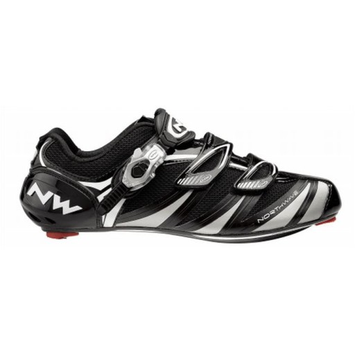 Наджорсткі черевики на надзвичайно тонкій підошві - це ідеальне поєднання. 3-слойна карбонова підошва - три шари карбону забезпечують мінімальну товщину і високу жорсткість. Взуття має систему повітряного потоку та змінні задні каблуки. Розроблені для використання на змаганнях, вони гарантують чудову передачу потужності на педалі.