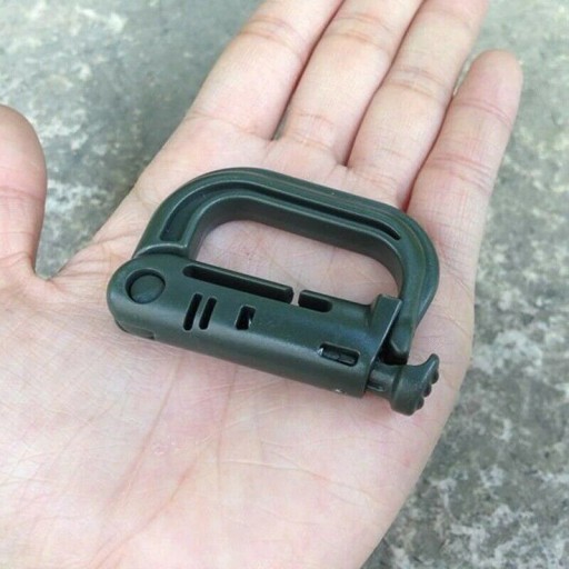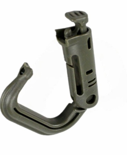 Пластиковий карабін виготовлений з високоякісного ацеталю - термопластичного полімеру напівкристалічної структури. Використовується для кріплення аксесуарів, лямок, додаткового обладнання, сумісний з системою MOLLE. Нова конструкція фіксуючого карабіна підвищує загальну надійність і комфорт використання моделі в рукавичках. Використання ацеталю також сприяє підвищенню зносостійкості, жорсткості, стабільності розмірів виробу, а також полегшує його.