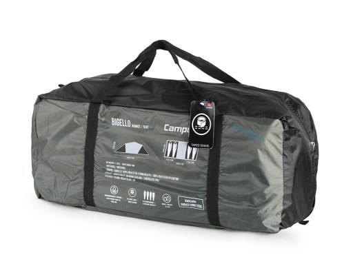 4-місний намет ідеально підходить для сімейних прогулянок або для компанії друзів. Має дві незалежні спальні з вентиляцією, а посередині - між ними - тамбур з підлогою, де можна сховати необхідні під час кемпінгу речі та приладдя. Простирадла та спальні на блискавці для швидкого доступу до внутрішньої частини намету. Намет виготовлено з водонепроникної тканини з покриттям для комфорту в будь-яких умовах. Маленький і легкий в упакованому вигляді (відносно своїх розмірів. Також чудово підійде для кемпінгу, каякінгу. Завдяки унікальним рішенням, які використовуються в наметах Campus, розкидання відбувається дуже ефективно і швидко.