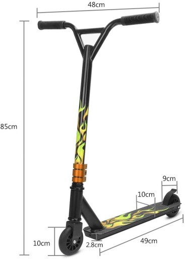 - Посилене кермо Y-образного типу, яке обертається навколо своєї осі з профільованою гумовою рукояткою TPR, забезпечує краще зчеплення та, таким чином, дозволяє виконувати точні трюки.