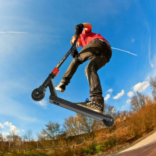 - Пластиковий сердечник, який використовується в самокаті, робить колеса ударостійкими і витримує великі навантаження, забезпечуючи комфорт і безпеку при виконанні трюків і екстремальній їзді.