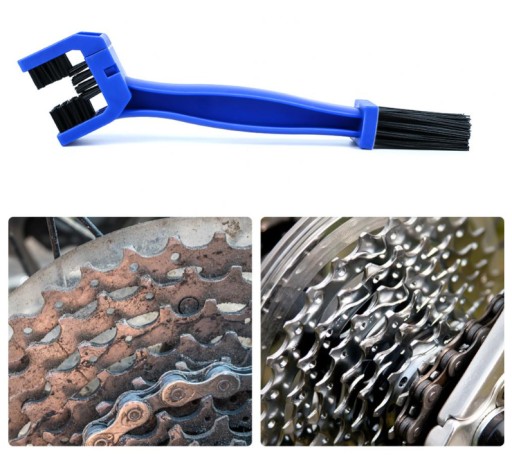 - квадратна структура верхньої частини щітки допоможе легко очистити ланцюг від бруду.