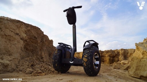 Двоколісний самовирівнюваний електромобіль Velex модель OFF-ROAD серії Х2 - виріб, призначений для пересування по складній грунтовій місцевості. Це третя модернізована версія цієї серії. Тут використовуються найновіші технологічні рішення. Для живлення двигунів використовувалися сучасні змінні Li-Ion акумулятори (2 х 2000 Вт). Це дає змогу поповнювати автомобіль у будь-який час без ризику пошкодження акумулятора. Нова розроблена система зарядки дозволяє швидко заряджати акумулятор - приблизно за 3 години від 0% до 80%. Сучасна система контролю нахилу забезпечує легке пересування без ризику падіння. Дуже великі 21" колеса зі спеціальним протектором підходять для складної місцевості. Всі ці рішення дозволяють використовувати модель Velex OFF-ROAD серії X2 не тільки в місцях з ідеальним ґрунтом. OFF-ROAD X2 використовується в службах громадського порядку (поліція, муніципальна поліція, охорона), зустрічах і корпоративних заходах, у рекламі (наприклад, ярмарки), екскурсійних поїздках і в багатьох інших місцях.