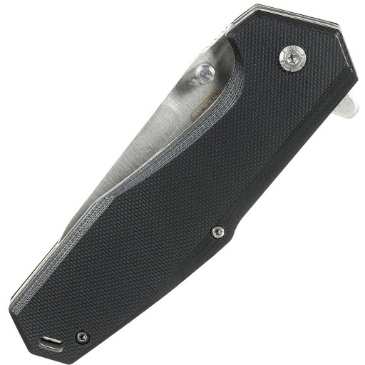 Відкриття леза однією рукою полегшується двостороннім штифтом і фліппером, який у відкритому положенні виконує роль гарда - захищає руку від зісковзування на лезо. Міцний замок вкладиша гарантує, що лезо не закриється випадково під час роботи.