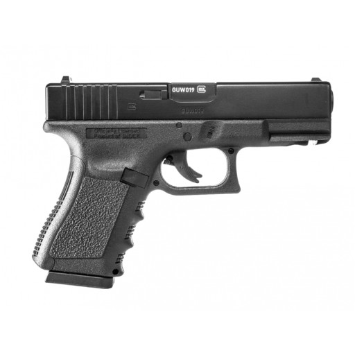 Glock 19 4,5 mm BB CO2 — це пневматичний пістолет з двигуном CO2, оснащений металевим замком, магазином, що висувається з рукоятки, і рядом конструктивних рішень, запозичених у вогнепальної зброї.