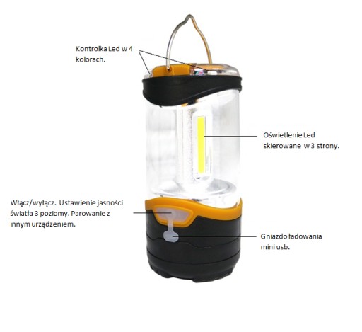 Лампа сумісна з сигналізаторами «КРИСТАЛ» також сумісна з парною моделлю TANDEM BAITS і MISTRAL Model FR-698. При кусанні вгорі горять світлодіоди 3-х кольорів (червоний, зелений, синій). Світильник можна використовувати під час риболовлі, гірських походів або кемпінгу. Він важить всього 270 грамів, а завдяки компактним розмірам ви навіть не відчуєте його в багажі. Він пропонує 2 режими освітлення, має 3 світлодіодні панелі з білим світлом і світлодіоди у верхній частині 4 кольорів (білий, червоний, зелений, синій) і живиться від знімної літієвої батареї 3,7 В (акумулятор). Акумулятор можна заряджати за допомогою кабелю USB, що входить в комплект. Лампа може видавати 5 Вт при 220 люмен. Світильник можна поставити на тверду поверхню або підвісити до металевого стрижня, розміщеного зверху. Роз'єм для зарядки захищений гумовою кришкою.