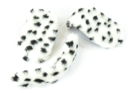 Потім кріпимо вушка на приклеєну липучку. Хвіст надівається ззаду за допомогою вшитої гумки, в місці кріплення окулярів.