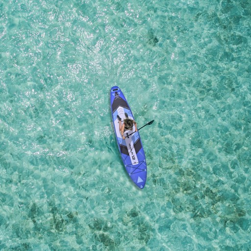 Алюмінієве весло з двома лопатями і сидінням дозволяють плавати в положенні сидячи. Збірка відбувається швидко та дуже легко, а після завершення дошка функціонує як каяк. Для далеких поїздок ви можете прикріпити свій багаж до носа завдяки спеціальному шнуру банджі та упакувати все у місткий рюкзак. Всі ці елементи ви знайдете в наборі. Придбавши його, ви відразу ж зможете почати грати.