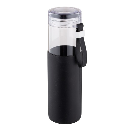 Пляшка для води в силіконовій оправі обов'язково знайде місце у вашому домі, якщо ви любитель простих і функціональних рішень. Виготовлений із високоякісного скла, який не містить бісфенолу А, він ідеально підійде для подорожей, їзди на велосипеді, кемпінгу чи школи. 100% герметичність гарантує велика кришка, що відкручується.