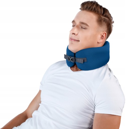 Дорожня подушка з термопласту (піна з ефектом пам'яті). Забезпечує підтримку голови в зручному положенні. Подушка має регульовані застібки, щоб ви могли регулювати її розмір на шиї.