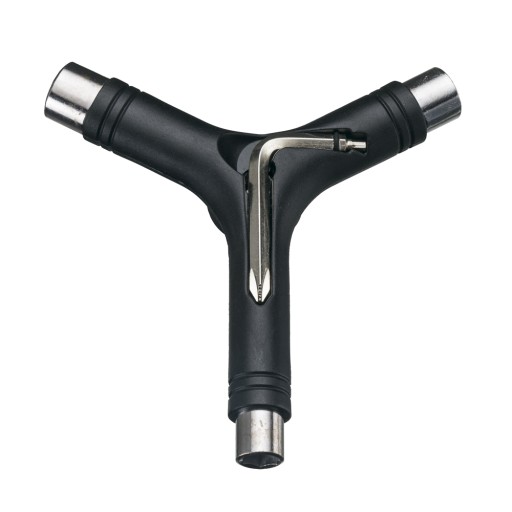 Ключ для скейтборду містить усе необхідне для збирання та ремонту скейтбордів, лонгбордів та пеннібордів. Він виготовлений із комбінації загартованого пластику та нержавіючої сталі. Він складається з гайкових ключів трьох розмірів (10, 13 і 14 мм) для затягування болтів шасі та коліс або безпосередньо для заміни цілих елементів. Крім того, ергономічна форма обладнання забезпечує легке використання. Всі гострі краї клавіш ретельно приховані для максимальної безпеки роботи. Тому Y-подібний ключ є важливим елементом спорядження кожного фігуриста.