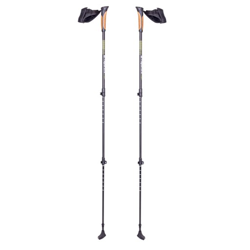 Зручні пробкові ручки ідеально лягають в руку і відводять піт. Розмір знімної петлі регулюється за допомогою липучок, щоб вона ідеально трималася в руці. Палиця оброблена міцним сталевим наконечником.